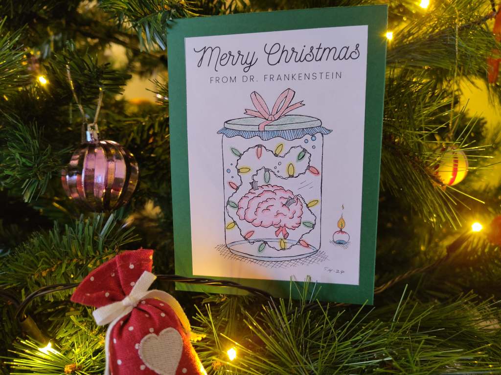 Yleisön pyynnöstä julkaisen viime vuotisen ”Merry Christmas from Dr. Frankenstein” -joulukorttipiirroksen vapaasti ladattavaksi.