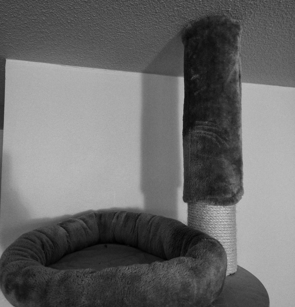 Nepparin tavarat ovat vieläkin asunnossa siellä ja täällä. Kuvasin muutamia yrittääkseni jotenkin kaapata valokuvaan tämän tyhjyyden, jonka kanssa elämme. Leluhiiri, kiipeilypuu, nukkumapaikka. Esineitä, joissa vieläkin näkyy kynnenjäljet. Kynsien, jotka ovat nyt tuhkaa uurnassa.